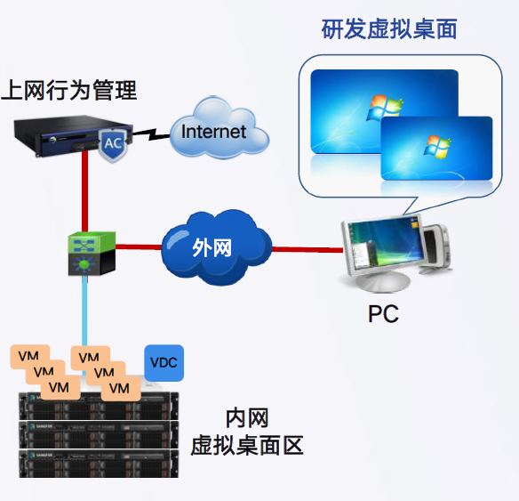 数据安全:上网数据有保障,可以对研发的虚拟机做各种安全策略,如应用黑白名单、外设黑白名单等。